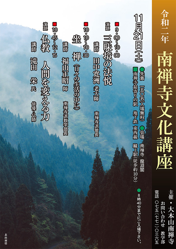 主催 大本山南禅寺 お問い合わせ 075-771-0365